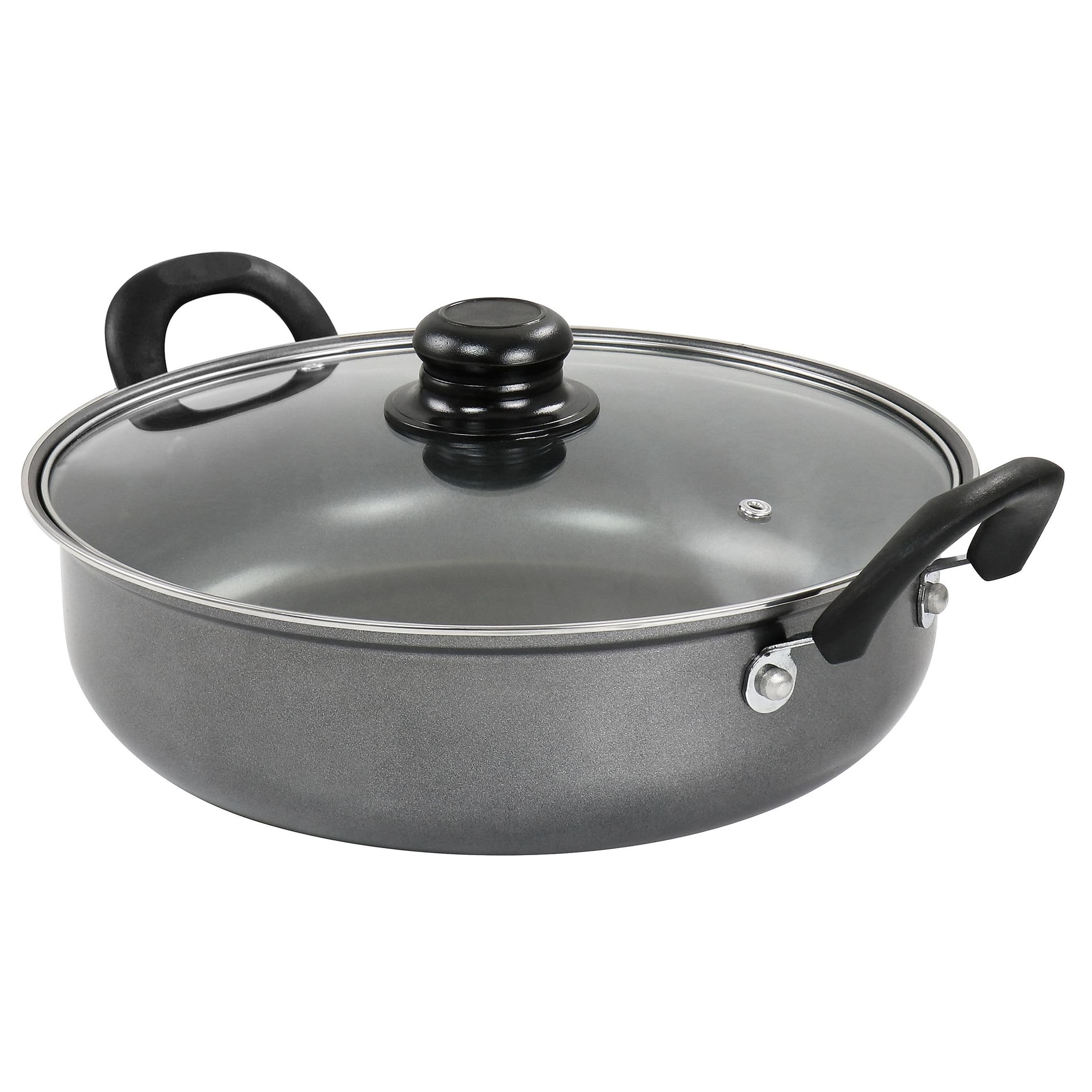 Home Home & Kitchen Gibson Everyday Highberry Non Stick Steel All Purpose Frying Pan with Lid, 12-inch Length, Charcoal, Kitchen Cooking Accessories, 127790.02