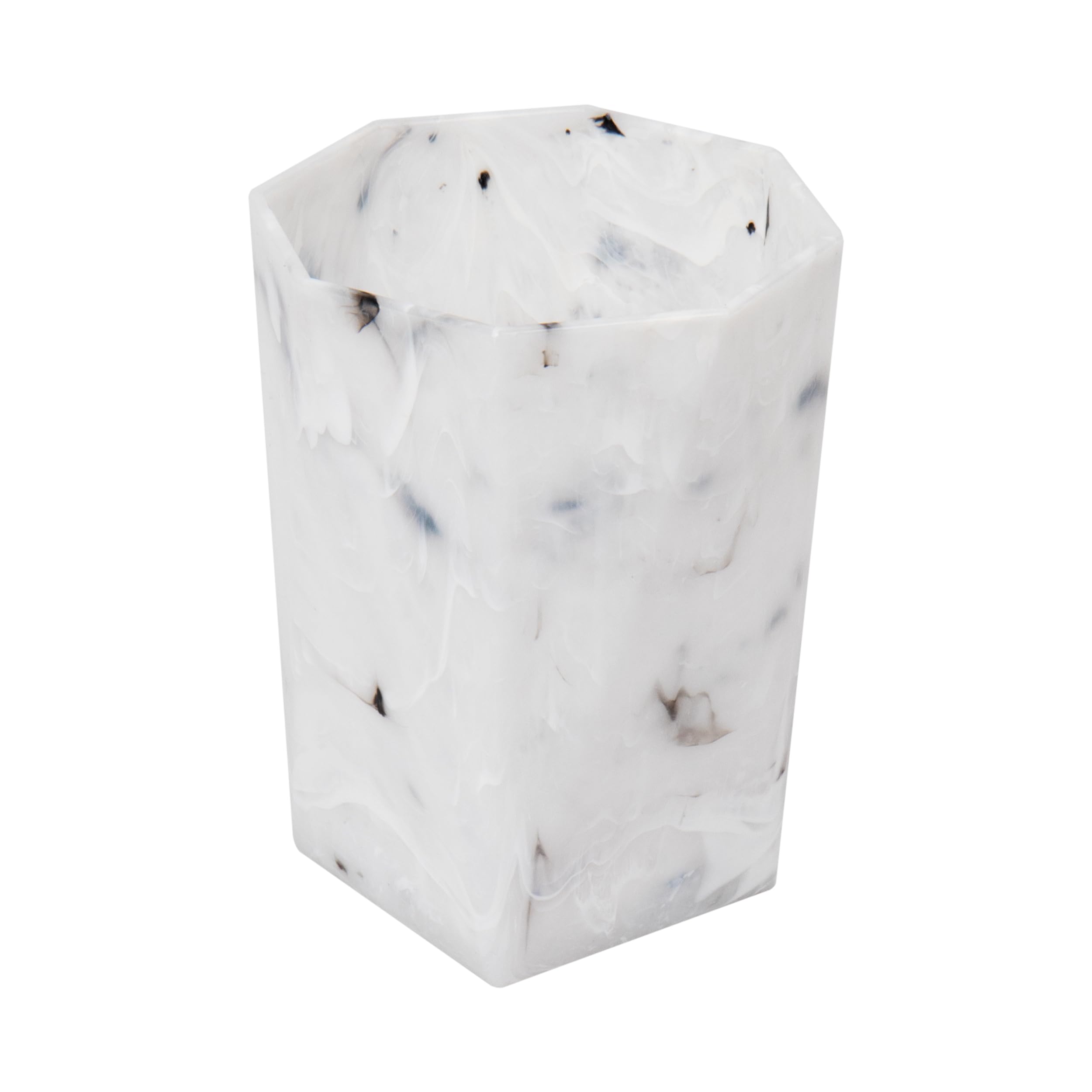 Maison Sucasa Tumbler for Bathroom, Countertop, Bathroom Accessory, Makeup Brush Holder, Pen Cup, Marble Design, Resin, White