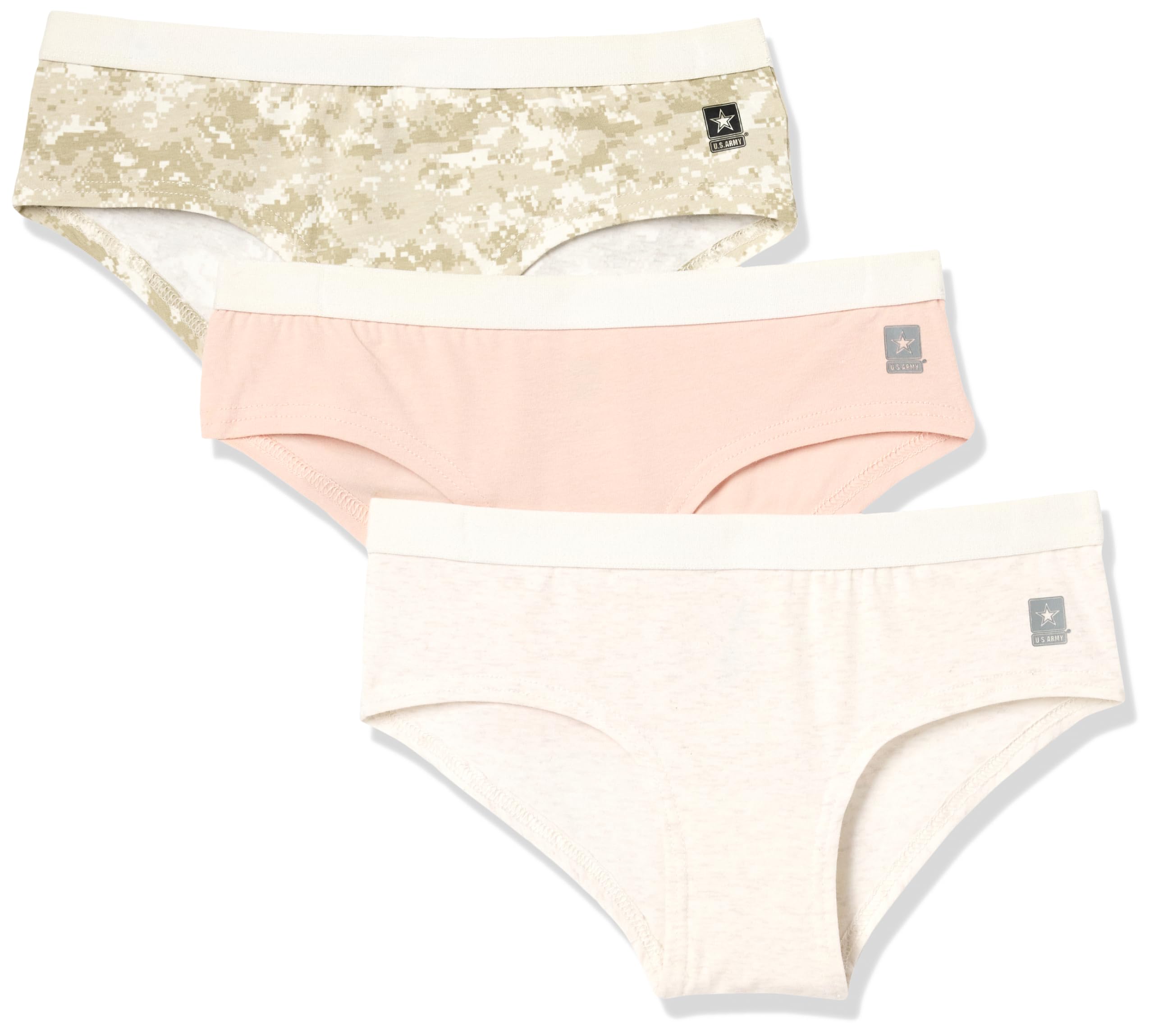 ARMY UNDERWEAR FOR WOMEN: Pack includes 3 sets of women’s underwear in pink, white and light sage digital camouflage print.
